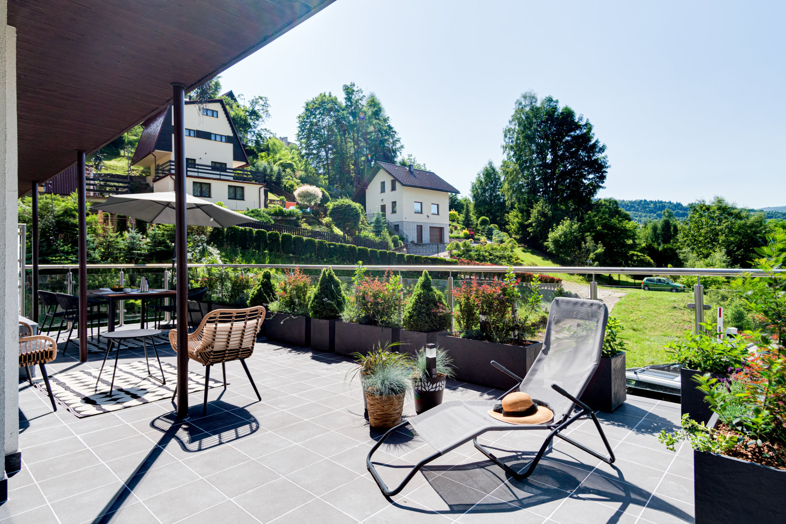 Przestronny apartament zlokalizowany w Kurorcie Kozubnik-Porąbka, urządzony z myślą o najbardziej wymagających klientach z zachwycającymi widokami na okoliczne pasma gór Beskidu Małego. Usytuowany na pierwszym piętrze butikowego apartamentowca z windą, w którym znajduje się kawiarnia, strefa wellness, pokój zabaw dla dzieci. Apartament składa się z salonu z aneksem kuchennym, sypialni z podwójnym łóżkiem oraz łazienki. Dużym atutem apartamentu jest 70 m2 taras okalający mieszkanie, z którego rozpościera się urzekający widok na góry Beskidu Małego od strony zachodniej oraz na dolinę Kozubnik od strony wschodniej.
